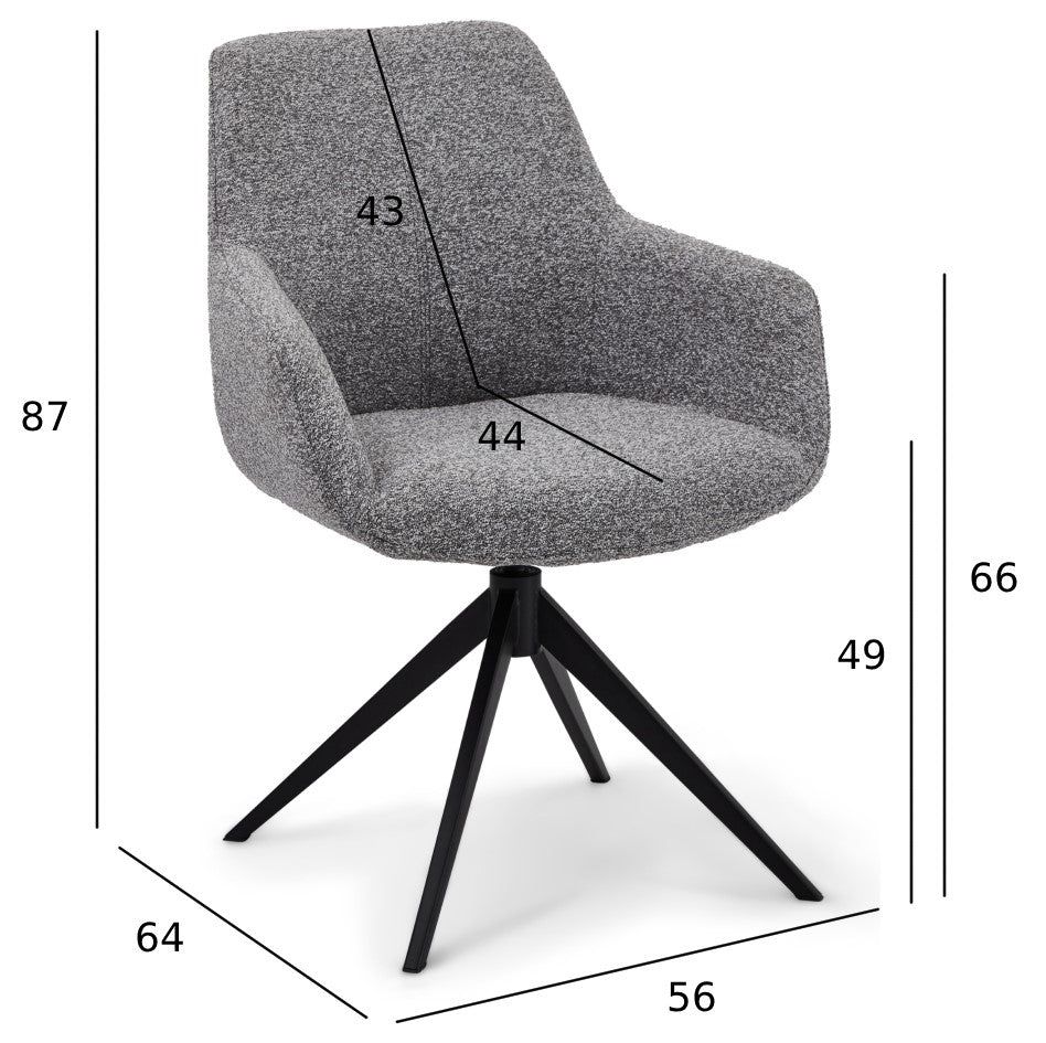 FURNHOUSE Helena Esszimmerstühle mit Armlehne 2er Set - Drehbar, Bouclé-Stoff Grau