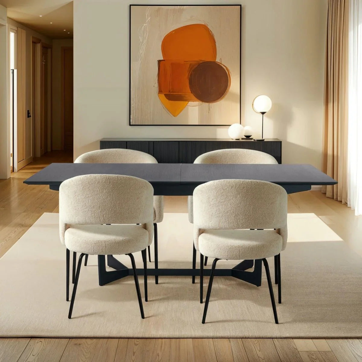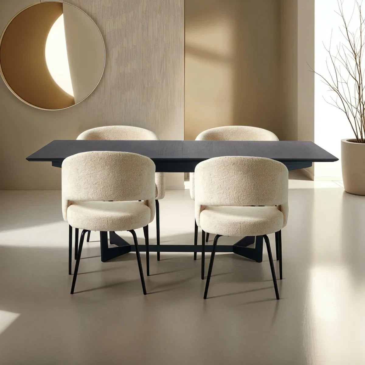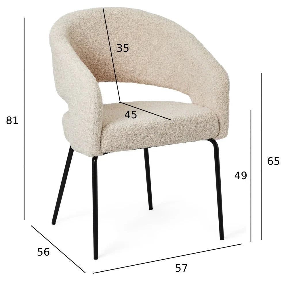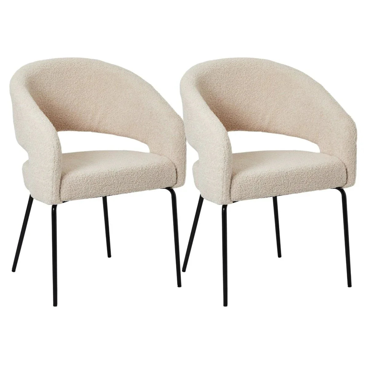 FURNHOUSE Natalie Esszimmerstühle mit Armlehne 2er Set - Bouclé-Stoff Beige