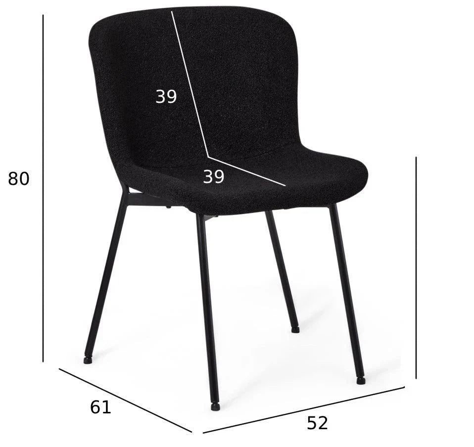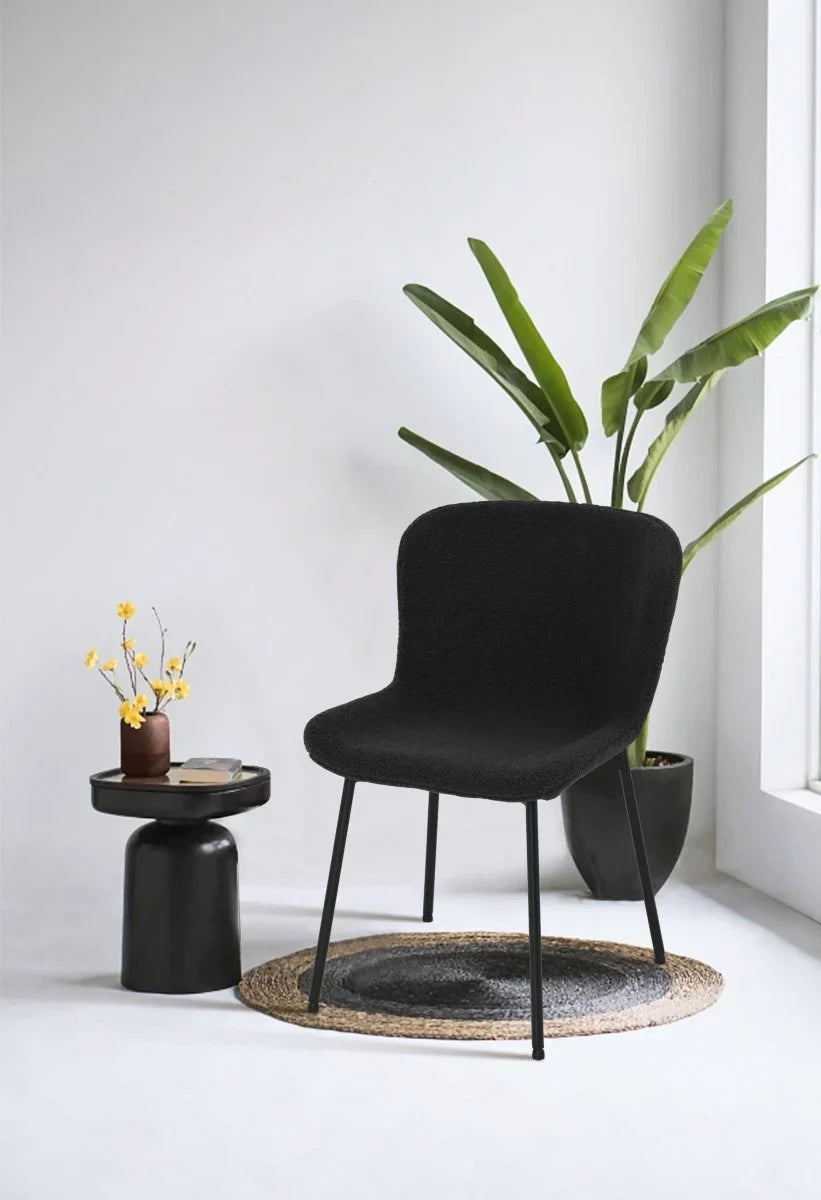 FURNHOUSE Teddy Esszimmerstühle 2er Set - Bouclé-Stoff Schwarz