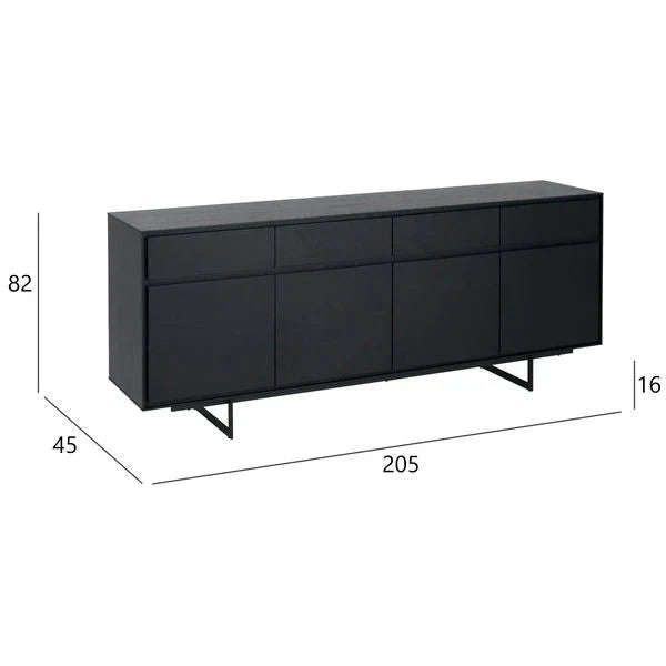 FURNHOUSE Tokyo Sideboard mit 4 Türen - 205 cm breit - Eiche Schwarz